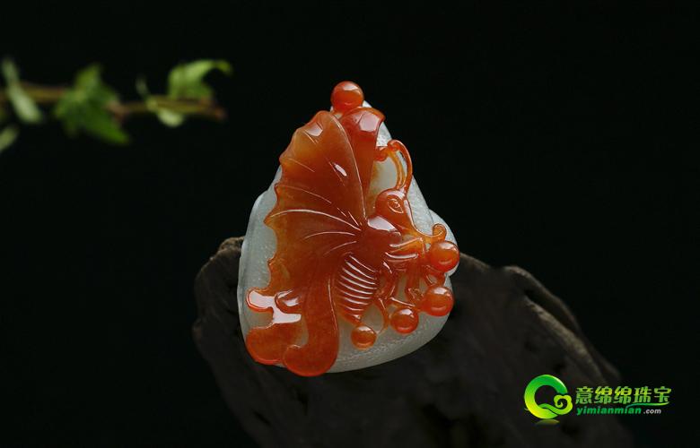 缅甸老坑糯冰种天然艳红翡翠A货玉蝴蝶挂件-蝶舞