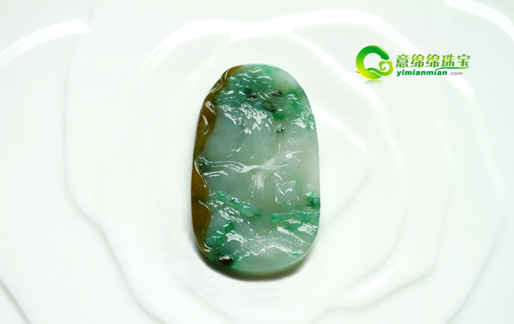 随着翡翠雕刻题材的不断丰富,很多极具创意的题材纷纷被雕刻师们呈现在一方方玉石中。特别是如红黄翡或是黄加绿这种颜色鲜艳美丽的翡翠玉石,多会被用以俏色巧雕。黄加绿是翡翠中十分珍贵的种类,数量稀少,若是有巧妙的雕刻,定能为其加分不少。虽然黄加绿翡翠多为糯种或者是豆种,但却依然不影响人们对黄加绿翡翠的喜爱,比如意绵绵商城中的两款黄加绿翡翠山水挂件。